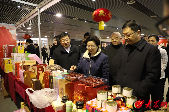 仪式结束后,全体参会人员一同巡展,实地了解大集展销情况。